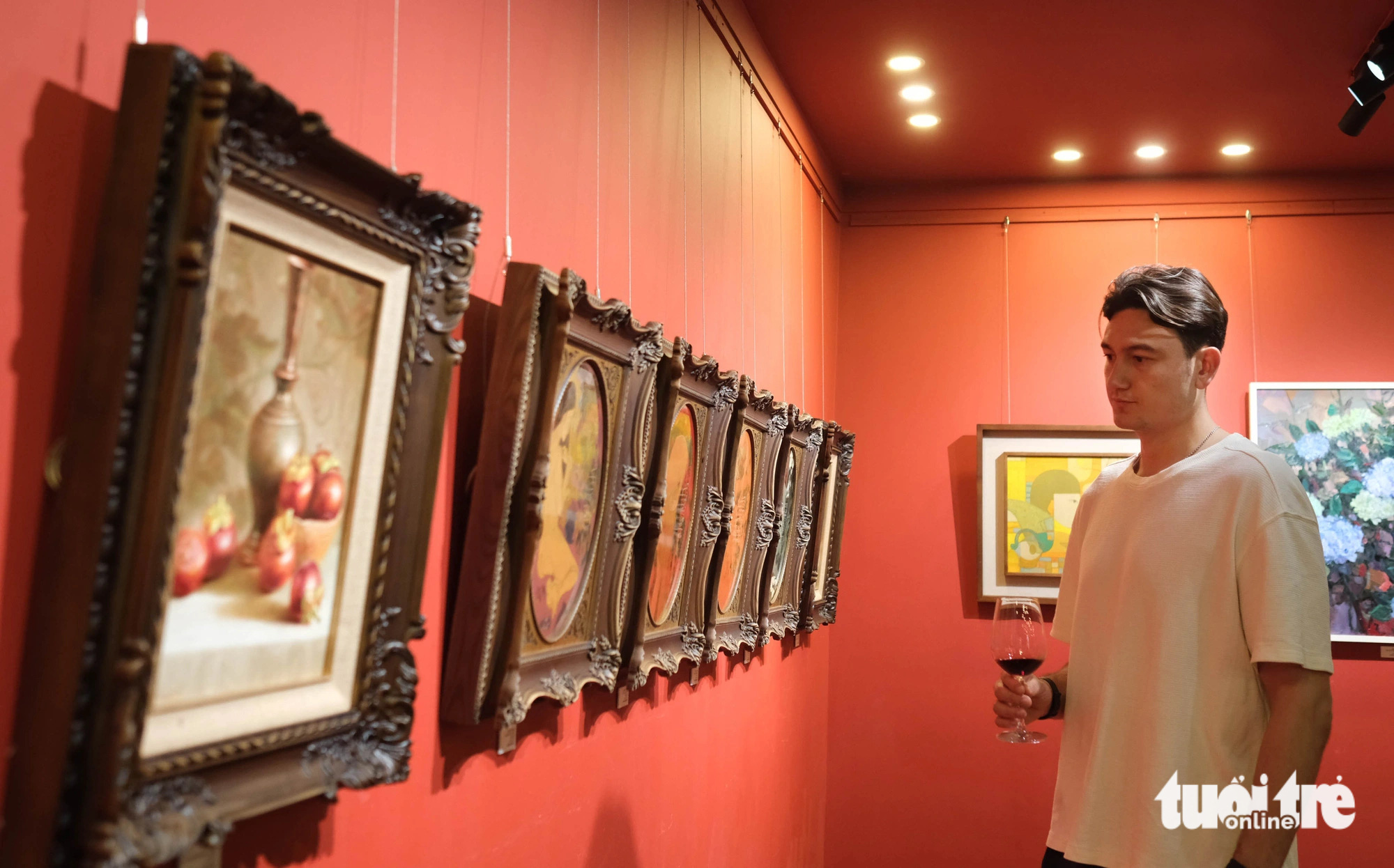 Thủ môn Đặng Văn Lâm xem tranh tại Đà Lạt - Ảnh: M.V