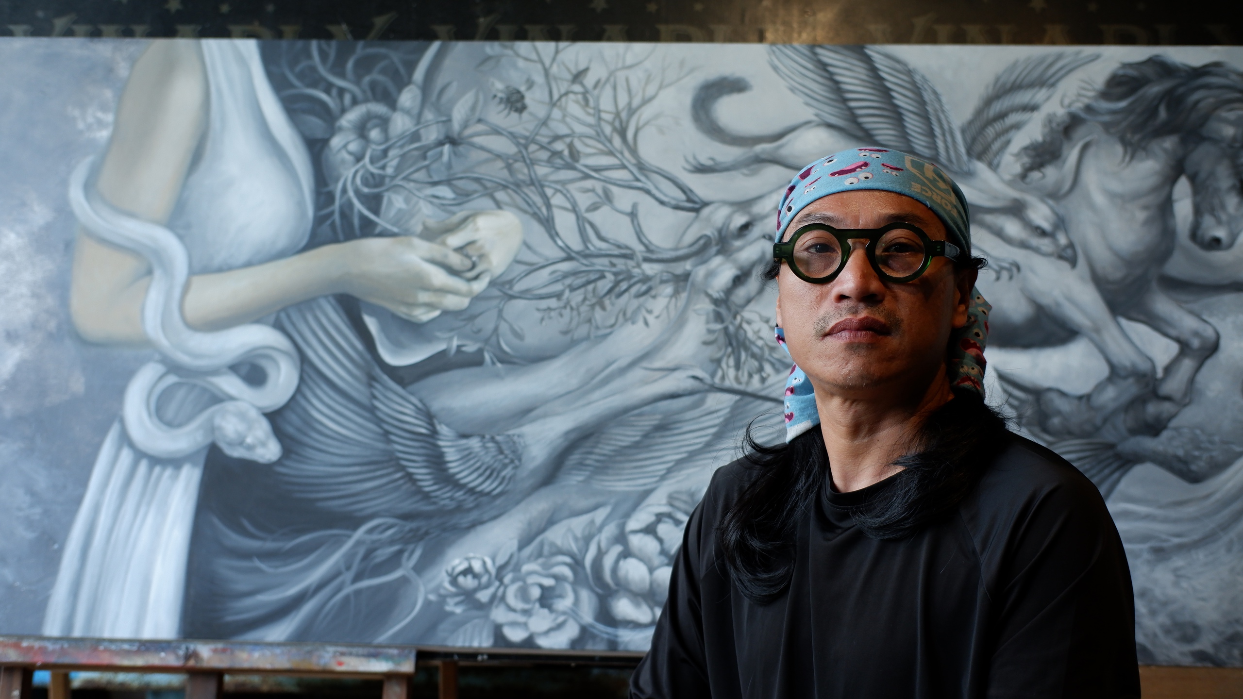 đó vào những bức tranh. Với lối vẽ sơn dầu đòi hỏi phải vẽ từng lớp và khối lượng chi tiết tác phẩm rất lớn, mỗi bức tranh mất trung bình 6 tháng, có bức mất 5-7 năm"